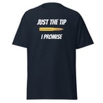 The 100% cotton men's classic tee will help you land a more structured look. It sits nicely, maintains sharp lines around the edges, and goes perfectly with layered streetwear outfits. Plus, it's extra trendy now!